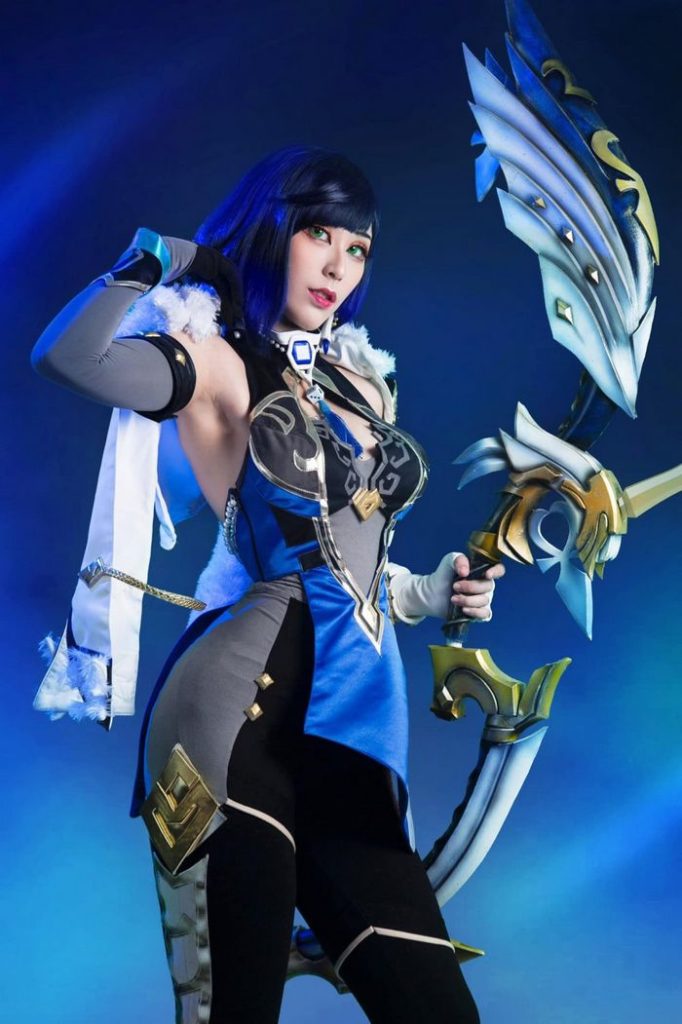 With a perfect blend of confidence, mystery, and allure, this exclusive shoot showcases Yelan’s bold outfit, graceful strength, and seductive elegance — all with Larissa’s signature twist of sensual charisma.