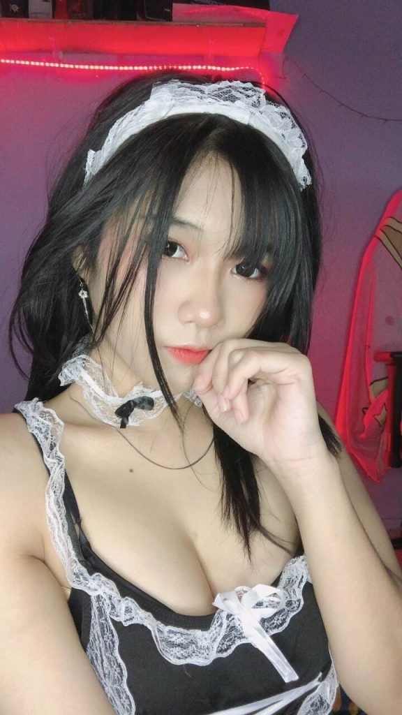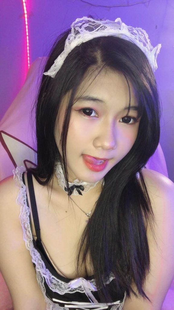 Wearing a frilly black-and-white maid dress, thigh-high stockings, and a soft pink blush on her cheeks, Lipay looks like she stepped right out of an anime cafe — but what happens next is far from PG.